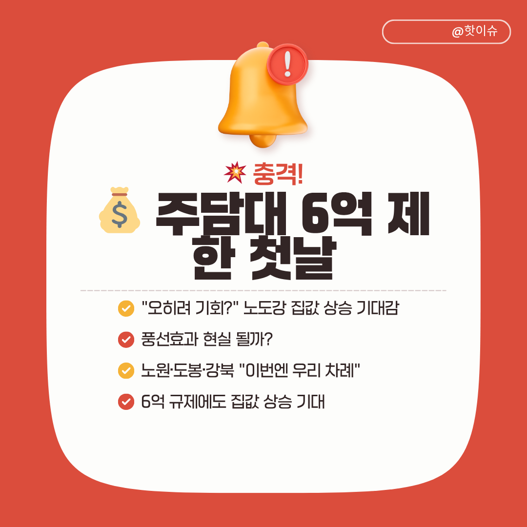 🏷️ 태그: #6억대출규제 #노도강집값 #풍선효과 #부동산대출규제 #중저가아파트 #노원구 #도봉구 #강북구 #부동산시장 #주택담보대출 #정책대출 #디딤돌대출